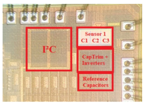 Figure 10 shows the microphotograph of the implemented system. The sensing capacitors are completely exposed through the removal of the passivation and the 200-nm nitride silicon layers.