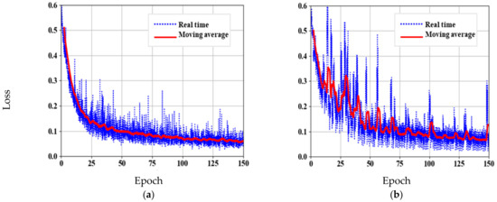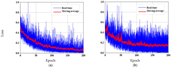 where is the attenuation coefficient of the learning rate, which is set as constant 0.99, and j represents the number of epochs. The network is trained with total epochs of 200 and a batch size of 32, which took around 10 h to reach the maximum iteration. During training, the network loss is quantified by cross-entropy, and loss curves are plotted as in Figure 5. Training loss and validation loss converges at 0.08 and 0.18, respectively. From the training graph it is revealed that, with the sample dataset, the model reduces the overfitting and increase the generalization in the network.