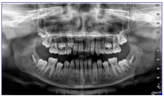 The patient is an 11-year-old female, in late mixed dentition. Clinical examination revealed acceptable oral hygiene, absence of functional anomalies and oral habits, the presence of deciduous molars (5.5 and 6.5), and erupting permanent teeth. The intraoral examination showed a molar and canine Angle class II on both sides, increased overjet, posterior unilateral functional crossbite on the right side, lower/upper midline deviated to the right/left of 2 mm, and increased overbite (5 mm) (
