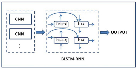 Topology of the CNN algorithm as input for the BLSTM-RNN algorithm, computing the hidden sequence h.