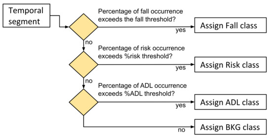 As has already been explained, the responses of these systems occur only after the user falls, acting as a rapid intervention mechanism when these events occur. However, in order to continuously monitor and prevent these falls, it is very interesting to detect possible risk of fall situations, although these events are much more complex to detect. Thus, it is very important to analyze the efficiency of the system based on these three states—fall, falling risk and activity of daily-living (ADL).