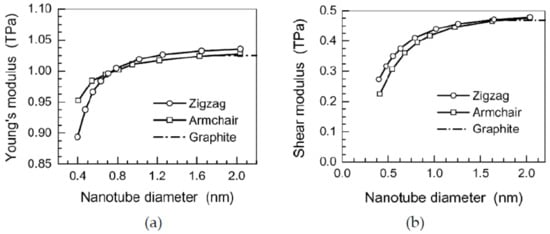 - Lu, J.P. Elastic properties of single and multilayered nanotubes. J. Phys. Chem. Solids 1997, 58, 1649–1652. [Google Scholar] [CrossRef]