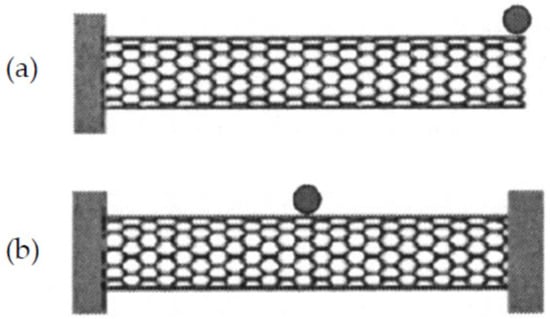- Georgantzinos, S.; Anifantis, N. Carbon nanotube-based resonant nanomechanical sensors: A computational investigation of their behavior. Phys. E Low-Dimens. Syst. Nanostruct. 2010, 42, 1795–1801. [Google Scholar] [CrossRef]