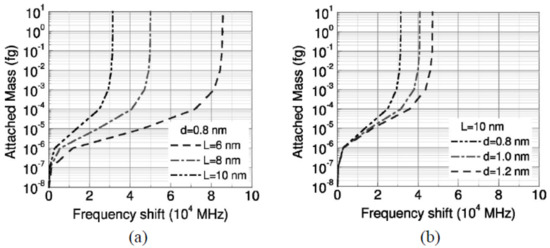 - Lee, H.-L.; Hsu, J.-C.; Chang, W.-J. Frequency shift of carbon-nanotube-based mass sensor using nonlocal elasticity theory. Nanoscale Res. Lett. 2010, 5, 1774–1778. [Google Scholar] [CrossRef]