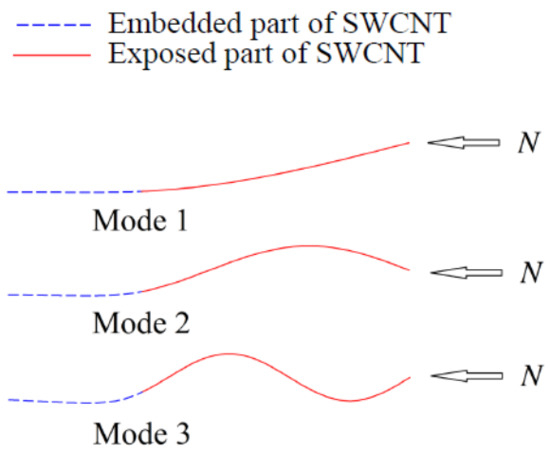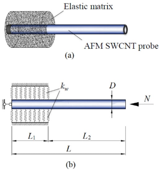 | Georgantzinos and Anifantis [130] | SWCNTs with diameters of 0.54, 0.8 and 1.09 nm, lengths of 6, 8 and 10 nm DWCNTs with inner diameter of 0.41, 1.09 and 1.76 nm, outer diameter of 2.44 nm, length of 17 nm | Cantilevered, bridged | MSM, FEM | SWCNTs is 2 times of DWCNTs |