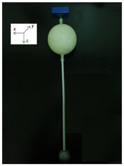 The spar buoy scaled model designed in the present paper consists of a spherical buoy with a central through hole, where a rigid rod is inserted. The rod has the dual purpose of supporting a stabilizing counterweight (ballast) in its immersed part and accommodating the sensors and electronics on the top (Figure 1).
