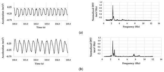 Figure 13a exhibits the trend of the data from the linear displacement sensor and the PPT that was placed on the upper side of the band at a frequency of 2.6 Hz (close to the frequency found in sea conditions) and a peak-to-peak magnitude of 1.9 mm.