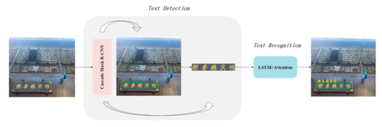 Scene text reading includes text detection and recognition, which is becoming mainstream technology for deep learning because of its excellent performance. The generalization ability of the object detection model allows for achieving the task of text detection. The Region Convolution Neural Network (R-CNN)-based object detection model [1,2,3] and its improved version trade speed for accuracy. The results of high mean Average Precision (mAP) makes R-CNN a general and basic model of text detection. Mask R-CNN [4] extends R-CNN detection methods and is applied to image segmentation. By comparison, detection models such as You Only Look Once (YOLO [5,6,7]) and Single Shot MultiBox Detector (SSD [8]) improve detection speed at the expense of slight accuracy. The ingenious trade-off between speed and the accuracy leads to the popularity of these models. Text recognition is responsible for recognizing texts in detection regions, and it usually adopts CNN, Long Short-term Memory (LSTM), and attention models.