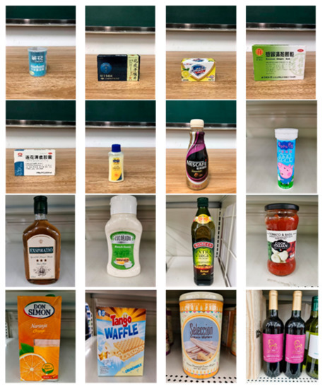 The robot extracts keywords from the user’s instruction and then captures images of the objects. The texts on objects are detected and recognized by the model, and then the texts of the recognized objects are stored in a text file. According to the user’s instruction, the confidence of current object is achieved by a fuzzy search in the text file. The object with the highest confidence is the target. Fuzzy search is done by a simple string matching algorithm between keywords and the content of text file. It makes it possible that an object can be represented by different keywords in a user’s instruction; only if the keyword can be searched from the text file, the object can be recognized. For example, “Tango Waffles”, the user can give the instruction either “Tango” or “Waffles”. Figure 13 shows part samples of the test dataset. Pictures are taken by the robot from daily life such as soap, medicine, biscuit, juice, skin care, and so on. The words on the items include Chinese and English.