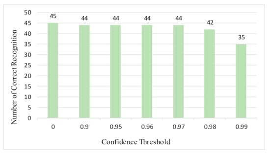 Confidence threshold comparison. There are 45 test samples; with the increase of confidence threshold, the number of correct recognition objects is reducing.
