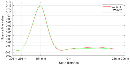 Influence line of tension force for cables LZ-W12 and LW-W12.
