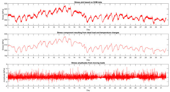 The presented mathematical procedure allows for a better understanding of the characteristics of the structure’s work. According to the authors, subsequent SHM systems could be equipped with such, or even more complex, algorithms for an immediate separation of the current measured signal.