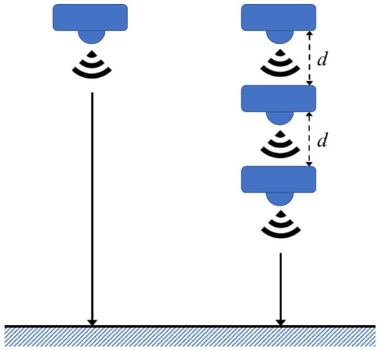 To be able to improve the measurement accuracy, previous studies widely used multiple sensors to measure the same targets, such as those in []. By processing the raw data through weight adjustment, the different sensors can efficiently get rid of the deviation of measurement. However, the increasing amount of sensors and complex calculations increase the cost of the devices for smart city applications. Table 1 shows the comparison of implementation between a single sensor and multiple sensors for accuracy improvement. Multiple sensors need more devices or sensors to be deployed in a defined area for obtaining raw data to improve the accuracy. Comparing device industrial design (ID) size, the device needs more space to place multiple sensors, which increases the cost. For maintenance, multiple sensors are more difficult to tune and will take more time to replace especially for a wider area of coverage. For the extendibility of the system, a single sensor is easier to implement by including additional devices or sensors. Therefore, a multi-step measurement process was proposed to improve the accuracy and keep the cost-efficiency. For distance measurement applications, the sensor is usually in a fixed location to measure the target to the required distance value. The deviation of the sensing value will decrease the accuracy of the measurement, which will affect the data analysis results in the smart city backend. In an ultrasonic distance sensor, Sahoo et al. provided an experimental result that lists the different required deviations given the different estimated distances in []. Using an ultrasonic sensor module, specifically the HC-SR04, the deviation of measurement was 0.8 cm at 100 cm, and 3.4 cm at 500 cm. Thus, a multi-step measurement mechanism was proposed to improve the deviation of measurement.