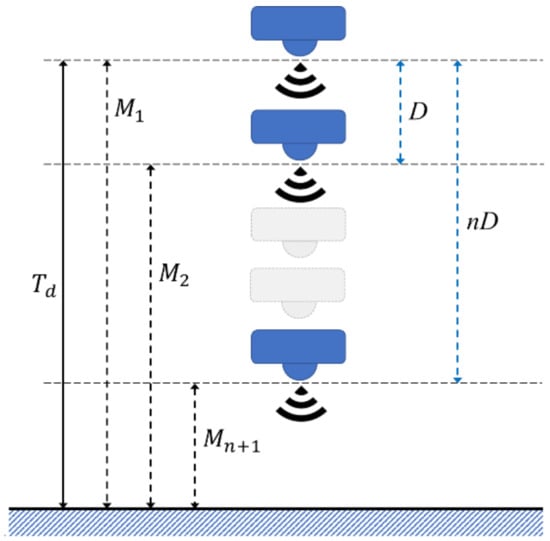 In multiple-sensor measurement, raw data processing is designed for measuring the deviations of different sensors. A weighting rule was proposed in [] to choose trusted data from sensors. In the single sensor system, raw data is only acquired from one sensor. The raw data processing has a lower complexity, as it handles data of one sensor only. In a multi-step measurement mechanism, the sensor measures the target actual distance with as the first location. Then, the motor moves the sensor by a fixed distance to measure the target, and the sensor acquires the distance of the target as at another location. With times movement, the mechanism acquires the distance data with their corresponding moving distance , as shown in Figure 2. To improve the accuracy of measurement, an averaging method was proposed, and is presented in Equation (1). The total distances acquired in the measurement process are divided by the number of moves. By using this method, the device measures the target several times from different locations, and is therefore a multiple-sensor measurement in a cost-efficient way. As such, the number of sensors and complexity of raw data processing are reduced.