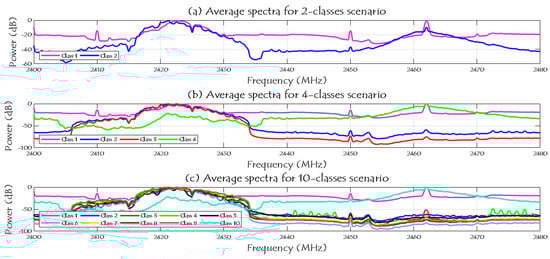 In UAV classification problems, reference datasets for the different modalities are still not generally known and validated. For most, if not all, researchers obtained their own data through various methods, including laboratory experiments, simulations, and outdoor measurements. In certain cases, data collected in the laboratory, for example, are combined with a certain amount of noise to simulate a real environment. This research is based on a dataset that was generated based on a real experiment [34]. It consists from set of recorded raw samples and segments for each class with respect to different number of experiments. The collected RF data at the receiver side is usually used for training and testing the model. The recorded time for the RF background activities is around 10.25 s, and the RF UAV communication for each flight mode is roughly around 5.25 s. The used dataset in validating our approach was published in 2019 [34], and the recorded segments were collected based on three different levels as illustrated below:
