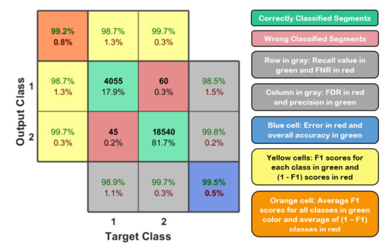 We compared our approach with three papers that used same dataset in their implementation [26,28,32]. In Reference [32], authors used three layers to implement the deep learning approach and also used 10-fold cross validation concept in the training and testing stages of the learning approach, while, in Reference [26], they tried to solve the detection problem and achieve better accuracy using CNNs not DNNs. Lastly, in Reference [28], authors used XGBoost algorithm for solving the classification problem by using only the lower band of the RF signals. The performance of the four approaches are summarized in Table 5.