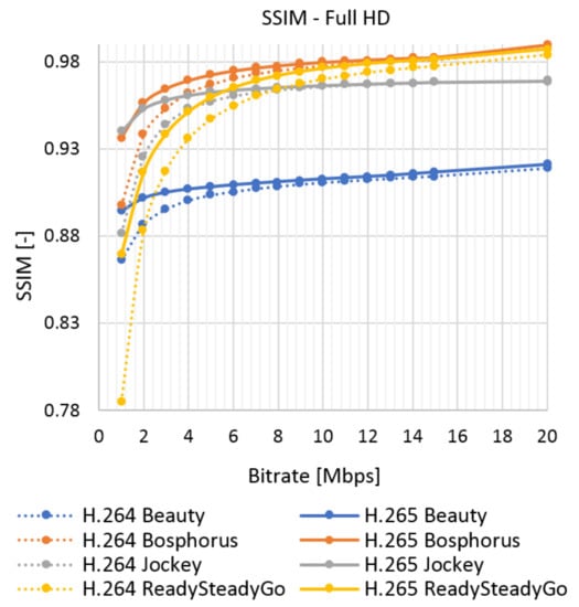 SSIM evaluation of Ultra Video Group (UVG) sequences—Full HD.