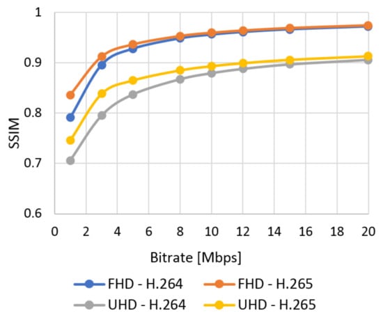Thus, each SRC for both resolutions was encoded to H.264 (AVC) and H.265 (HEVC) compression standards, and eight different bitstreams (Figure 1).