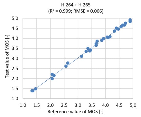 The quality was evaluated by both types of metrics (objective by SSIM and subjective by ACR). Based on the described correlation, the MOS prediction of subjective quality can be made.