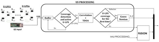 Since there is no synchronization between the U-LPS and the receiver, the US Processing block is based on the determination of TDOA between the receptions from the different beacons using the beacon received with more energy as the reference beacon. Figure 7 summarizes the US processing involved in the LOCATE-US application.