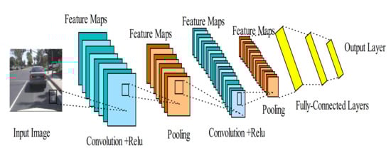 For a better understanding, the process involved in the whole DCNN can be better represented mathematically if we express as the input data of size , with representing the spatial level of , and as the number of channels. Similarly, if we assume a filter with its associated weights and bias . Then, we can obtain the output associated with the convolutional layer, as given in [87]: