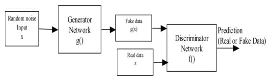 Generative Adversarial Networks (GANs) are among the most prominent deep neural networks in the generative models family [99]. They are made of two network blocks, a generator, and a discriminator, as shown in Figure 7. The generator usually receives a random noise as its input and processes it to produce the output samples that look similar to the data distribution (e.g., fake images). In contrast, the discriminator tries to compare the difference between the real data samples and those produced by the generator.
