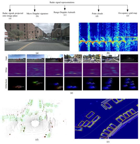 With the recent advances in deep learning technology, many research domains such as signal processing, natural language processing, healthcare, economics, agriculture, etc. are adopting it to solve their respective problems, achieving promising results [20]. In this respect, a lot of studies have been published over the recent years, pursuing multi-sensor fusion with various deep convolutional neural networks and obtaining a state-of-the-art performance in object detection and recognition [31,32,33,34,35]. The majority of these systems concentrate on multi-modal deep sensor fusion with cameras and Lidars as input to the neural network classifiers, neglecting automotive radars, primarily due to the relative availability of public accessible annotated datasets and benchmarks. This is despite the robust capabilities of radar sensors, particularly in adverse or complex weather situations where Lidars and cameras are largely affected. Ideally, one of the reasons why radar signals are rarely processed with deep learning algorithms has to do with their peculiar characteristics, making them difficult to be fed directly as input to many deep learning frameworks. Besides, the lack of open-access datasets and benchmarks containing radar signals have contributed to the fewer research outputs over the years [18]. As a result, many researchers self-developed their own radar signal datasets to test their proposed algorithms for object detection and classification using different radar data representations as inputs to the neural networks [36,37,38,39,40]. However, as these datasets are inaccessible, comparisons and evaluations are not possible.