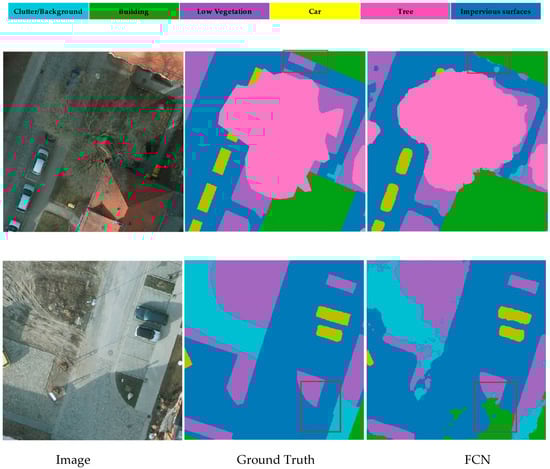 Secondly, it is challenging to accurately distinguish the boundary of specific objects in aerial images from their surroundings. Take the Potsdam dataset as an example, the labels of low vegetation and trees, cars, and cluttered backgrounds, etc., are often confused by computer vision models because they have similar features from a local perspective. The FCN-like CNN architecture gradually loses spatial information in the decoding process, and this information is not well recovered in the upsampling process. This could lead to problems with the modeling algorithm in accurately classifying the objects in the photo and finely segmenting the outer edge.