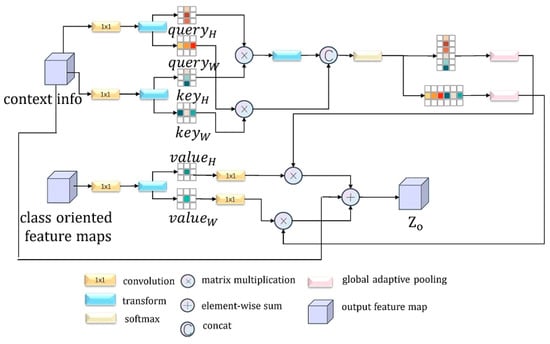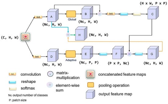 As shown in Figure 6, it is assumed that for the obtained contextual information feature map and class-oriented feature maps , the specific computational procedure is briefly summarized as follows: