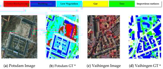 Images and Ground Truth of Potsdam and Vaihingen Datasets (* GT: ground truth).