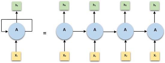 RNN is a class of artificial neural network derived from the feed forward networks [47]. However, the distinguishing feature between recurrent and feed-forward networks is presence of at least one feedback connection in the recurrent networks. This connection feeds a part of the produced output back to the input. Thus, the activations pass around in a loop enabling the network to learn sequences and perform temporal processing. Hidden state which serves as a memory, retaining sequential information that the network has witnessed so far from the preceding timestep, is the most noteworthy feature of RNN. The same function is applied to all the inputs (operating with the same set of parameters) and hidden layers to generate the output. This reduces the complexity of parameters, unlike other neural networks. The weight matrices act as filters deciding the significance assigned to the current and previous hidden states. The feedback loop very exists at every timestep and adds traces of past hidden states. Basic RNN architecture is shown in Figure 3. The RNNs do not suffer from the limitation of accepting fixed dimensions for inputs and outputs and are flexible to variable sized inputs and corresponding outputs. RNNs rely on an application of back-propagation when applied to sequence problems like that of time series data called back-propagation through time (BPTT). The BPTT algorithm provides sequential sets of input/output timesteps to the network. It unfolds the network and calculates inaccuracies across each timestep. Finally, the algorithm rolls up the network and updates weights across the network. This entire process is repetitive. The computational cost of BPTT has a direct relation with the number of timesteps. When the number of timesteps is higher, weight updates become an exhausting process depending upon calculations of derivatives. The weights eventually vanish or explode resulting in noisy model performance and poor learning. A gradient explains the change in all weights with regard to the change in error. Hence, the problem is identified as the vanishing or exploding gradient problem in RNNs [48].
