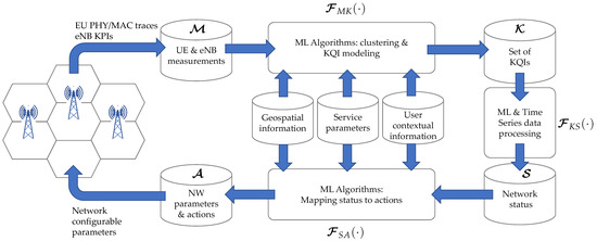 - Fiandrino, C.; Zhang, C.; Patras, P.; Banchs, A.; Widmer, J. A Machine-Learning-Based Framework for Optimizing the Operation of Future Networks. IEEE Commun. Mag. 2020, 58, 20–25. [Google Scholar] [CrossRef]