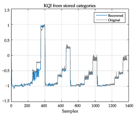 Blue: recovered KQI from . Black: original data; blue: recovered KQI. Compare with Figure 7.