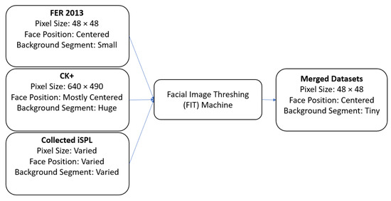 Merging the CK+, the FER 2013, and the iSPL datasets by using the FIT machine.