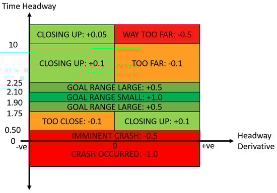 Time headway based reward function for vehicle following.