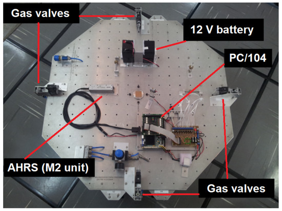 To verify the results achieved in the simulated tests, an experimental test was conducted. The employed AHRS, namely, an automotive-grade M2 unit from Innalabs®, was mounted aligned to the navigation frame on a semispherical three degrees of freedom (3-DOF) air bearing [86], as depicted in Figure 3. The test was conducted at the Brazilian National Institute for Space Research (INPE), in São José dos Campos, Brazil. The geographic coordinates of the site are: −23.2113 deg of latitude, −45.1408 of longitude, and 641 m of altitude.