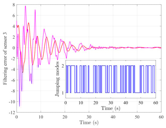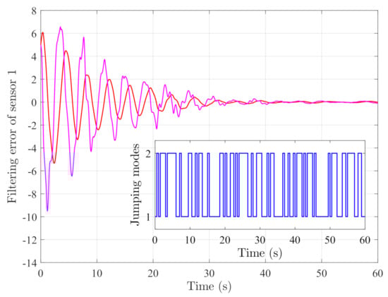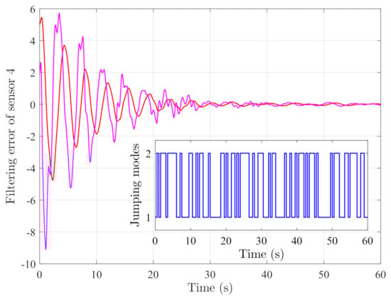As a result, by letting  and , the filtering error dynamics can be obtained in Equation (14):