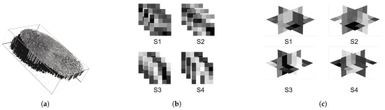 Illustration of 3-D sampling and decomposition. Fingerprint Video (a), 3-D patches sized () (b), and patches in b decomposed into xy, xt, and yt planes (c).