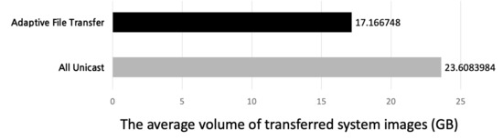 Figure 15 shows the amount of decreased volume of transferred system images by using adaptive file transfer. In most of the cases of our simulated result, we could see the decrease in the volume of transferred system images through adaptive file transfer.