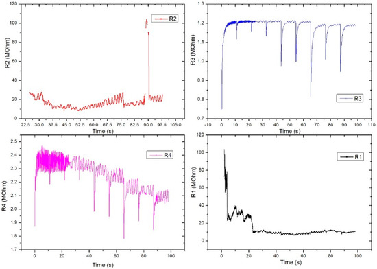 | Resistance (MOhm) | Sensitivity % | Resistance (MOhm) | Sensitivity % | Resistance (MOhm) | Sensitivity % | Resistance (MOhm) | Sensitivity % | |