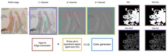 Inspired by the image-making process from an artist’s perspective "lines first, color after”, the network that was proposed by Nazeri et al. [17] uses a three-stage GAN network: firstly, the edges are learned in the missing region from the grayscale input; secondly, the color information in the missing area is learned from the RGB input; and, thirdly, the joint edge and color information are trained in conjunction.