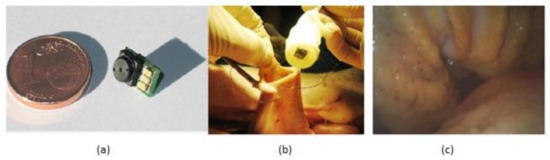 - Covi, D.; Cavallotti, C.; Vatteroni, M.; Clementel, L.; Valdastri, P.; Menciassi, A.; Dario, P.; Sartori, A. Miniaturized digital camera system for disposable endoscopic applications. Procedia Chem. 2009, 1, 1223–1226. [Google Scholar] [CrossRef]