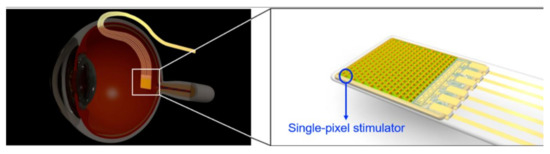 - Kang, H.; Abbasi, W.H.; Kim, S.-W.; Kim, J. Fully Integrated Light-Sensing Stimulator Design for Subretinal Implants. Sensors 2019, 19, 536. [Google Scholar] [CrossRef] [PubMed]