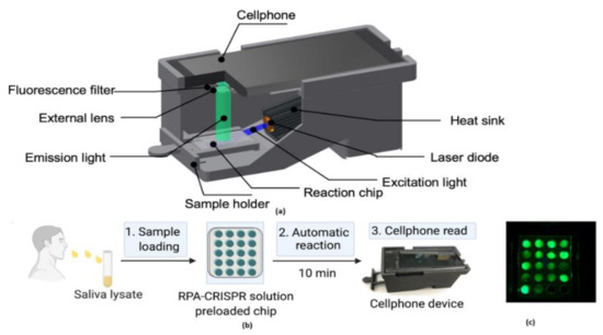 - Ning, B.; Yu, T.; Zhang, S.; Huang, Z.; Tian, D.; Lin, Z.; Niu, A.; Golden, N.; Hensley, K.; Threeton, B.; et al. A smartphone-read ultrasensitive and quantitative saliva test for COVID-19. Sci. Adv. 2021, 7, eabe3703. [Google Scholar] [CrossRef]