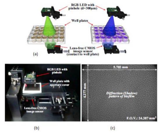 - Kwak, Y.H.; Lee, J.; Lee, J.; Kwak, S.H.; Oh, S.; Paek, S.-H.; Ha, U.-H.; Seo, S. A simple and low-cost biofilm quantification method using LED and CMOS image sensor. J. Microbiol. Methods 2014, 107, 150–156. [Google Scholar] [CrossRef]