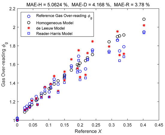 - Then the gas over-reading is estimated according to the homogenous model (Equation (26)).