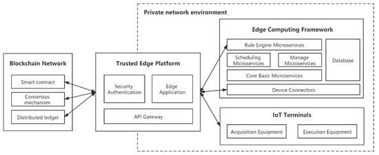 Based on the design idea of microservice architecture, we propose a trusted edge platform based on a blockchain network in an edge computing environment. As shown in Figure 1, the edge computing environment consists of the following participants: