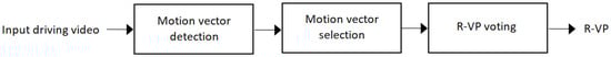 The existing motion-based methods attempt to select useful vectors. Motion vectors that are long and not belonging to a certain area where other moving objects exist are selected [34,35,36,37]. In the methods, they eliminate the vectors in the area of on-coming and in-parallel driving vehicles. However, we observe that the motion vector selection also eliminates useful vectors for R-VP detection. It is helpful to keep the motion vectors coming from stationary objects.