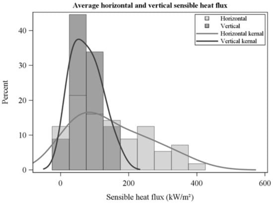Average horizontal and vertical sensible heat fluxes over residence times.