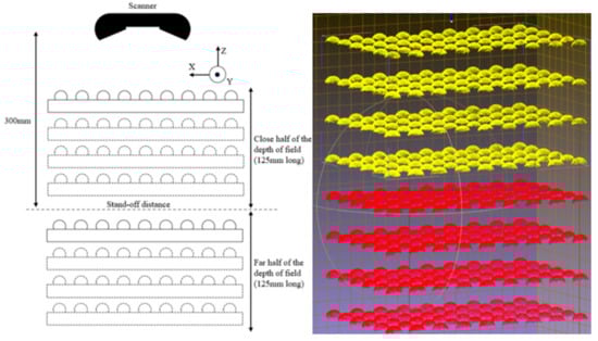 This section details the different procedures and experiments to acquire the necessary data. The experiments focused on building a global understanding of the scanner’s capabilities (i.e., its errors in measuring distances, size, and form inside its measuring volume) and the impact of three scanning parameters, namely the orientation of sweeps, exposure time, and Z-distance from the scanner, on the measurement errors.